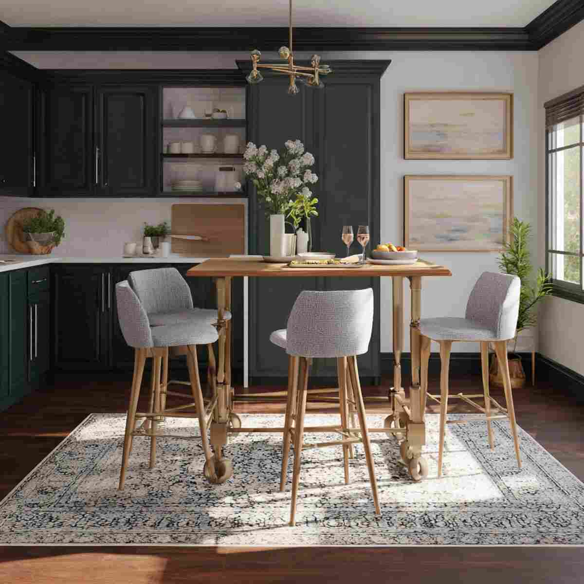 They hold kitchen essentials while still serving as a dining surface. As a small space dining zone idea, it ensures nothing goes to waste.