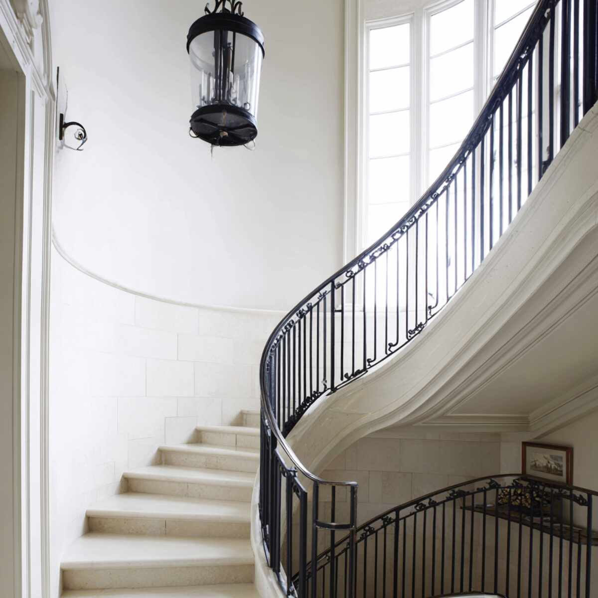 Curved handrails follow the natural flow of the staircase, offering both elegance and ergonomic support.