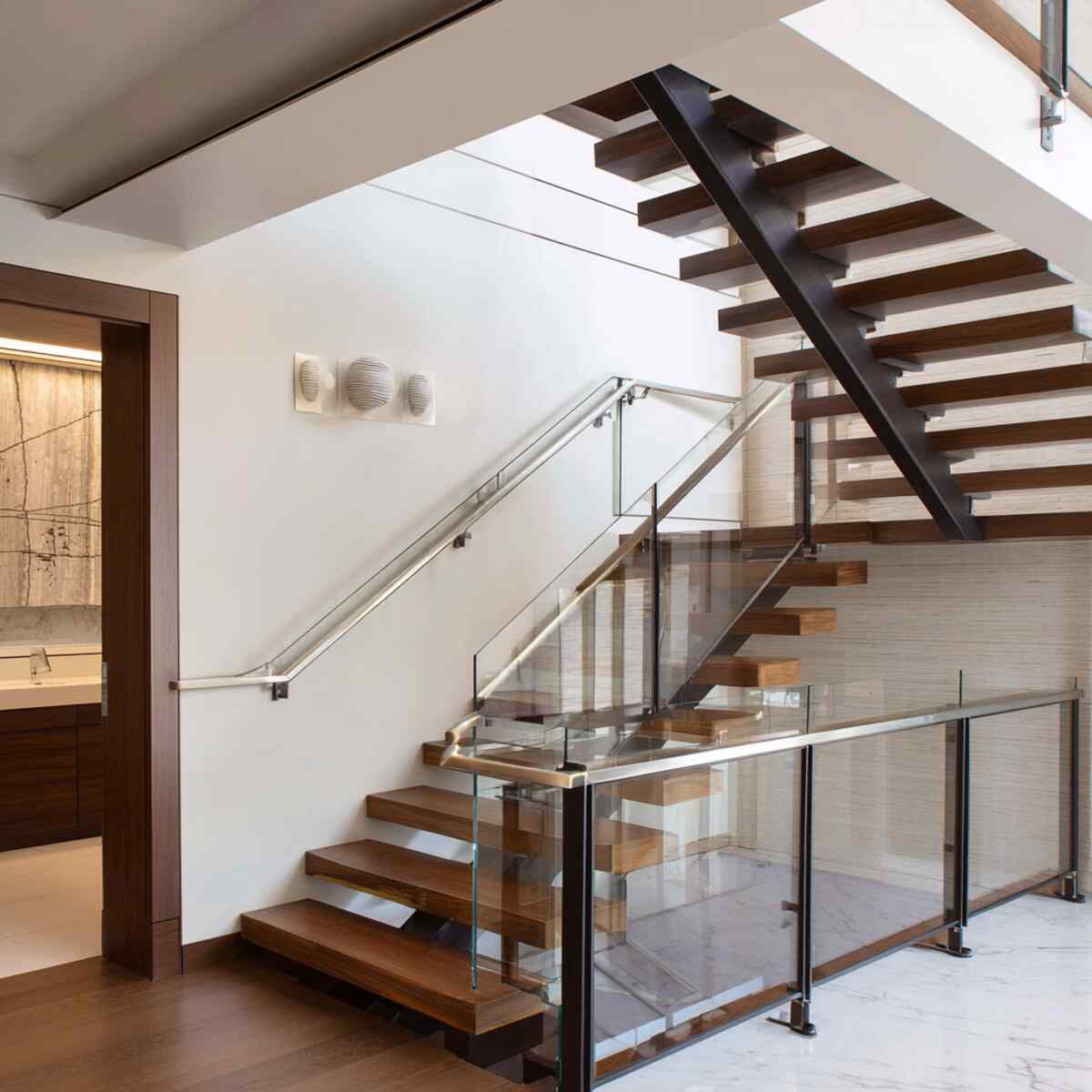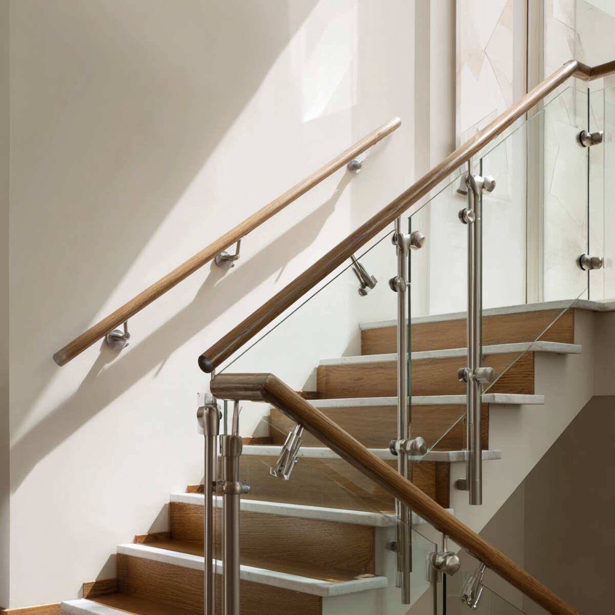 Glass panel handrails offer a transparent, open feel that can make staircases appear larger and brighter.