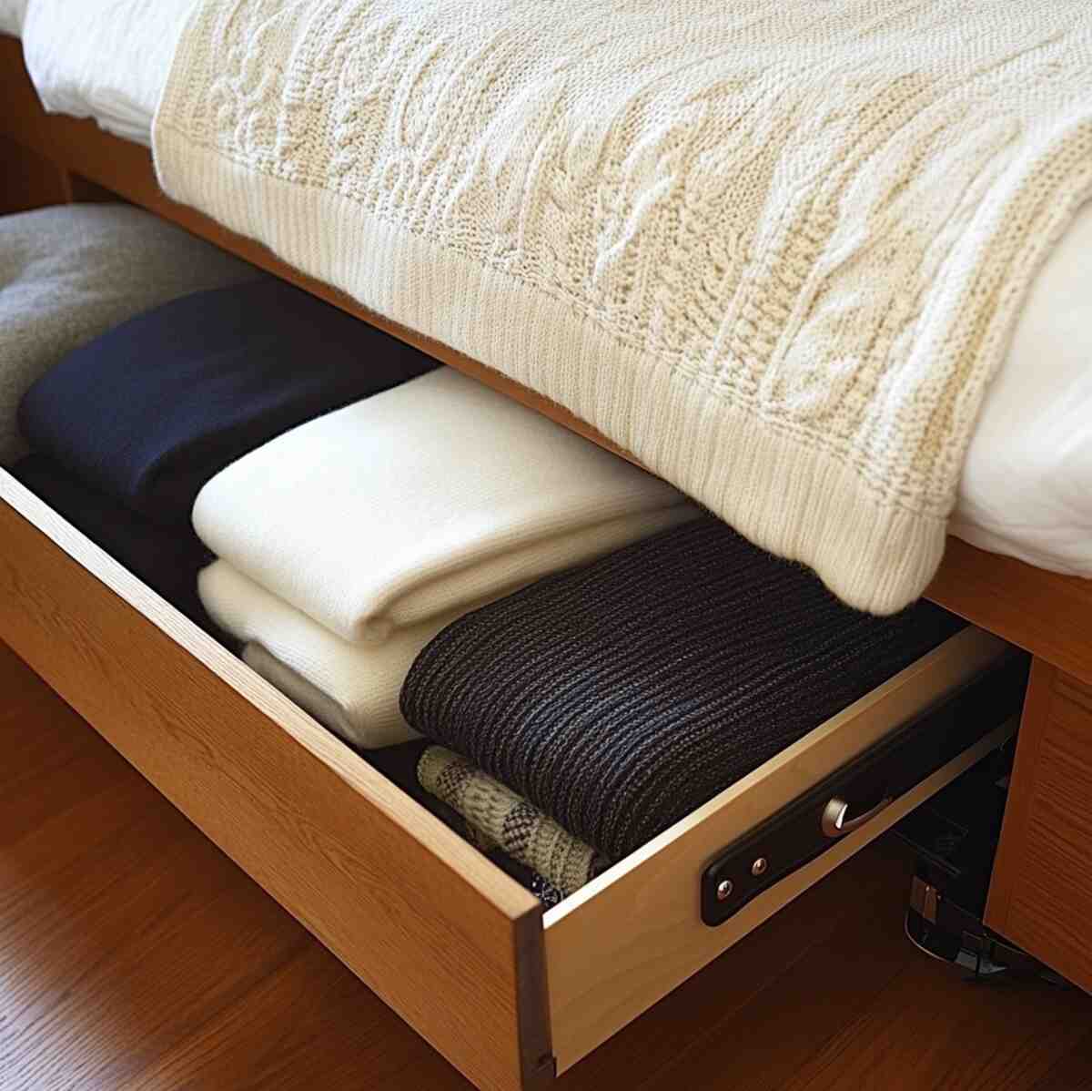 It fits smoothly under most beds and works well with Under Bed Rolling Storage Ideas focused on soft items. The drawer keeps everything clean, folded, and easily reachable during colder months.