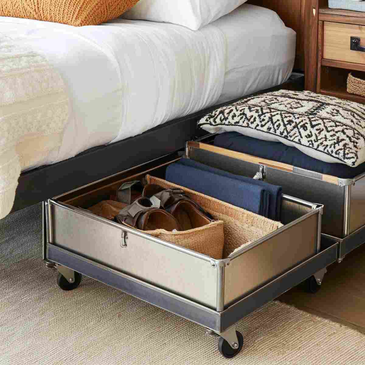 This is one of the most useful Under Bed Rolling Storage Ideas for hobby lovers who want quick access but limited space. The wheels let you slide the cart closer when working and tuck it away neatly when done.