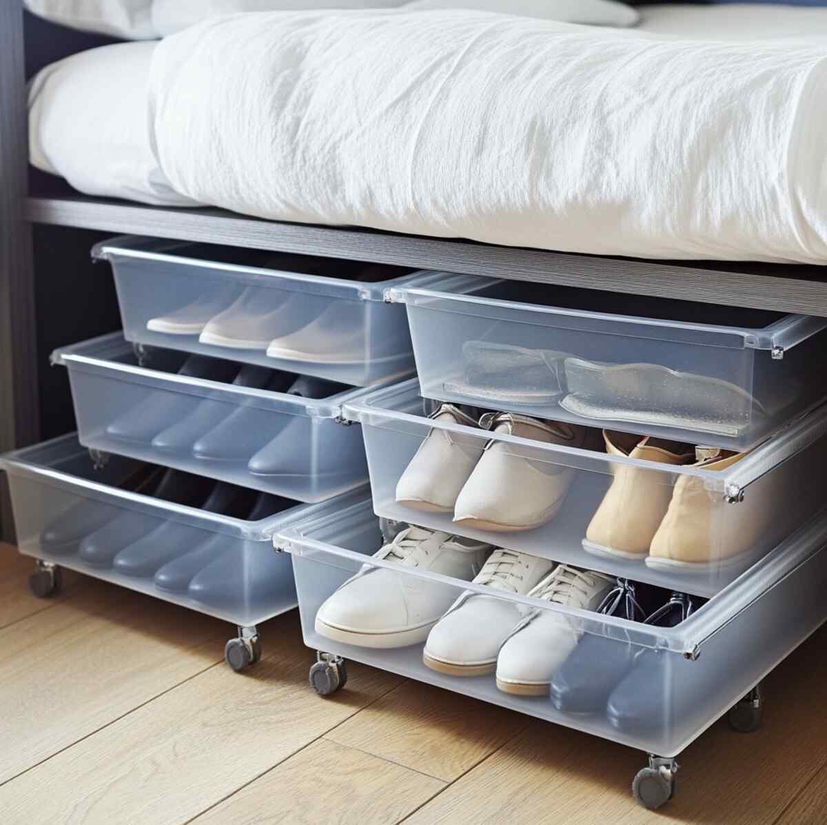 A rolling shoe tray is one of the most common Under Bed Rolling Storage Ideas because it keeps shoes neat and easy to reach.