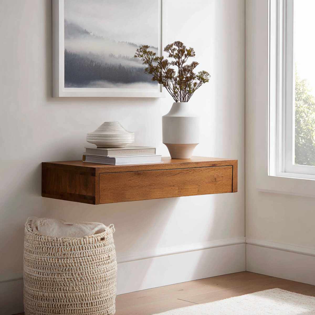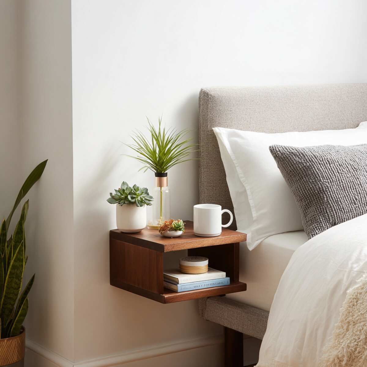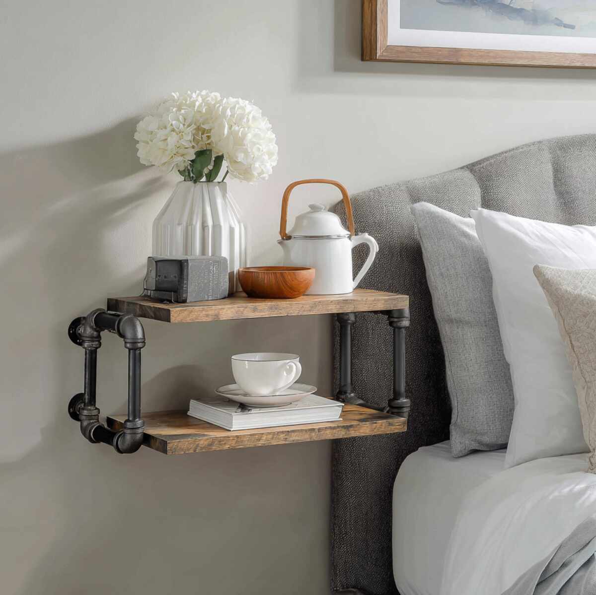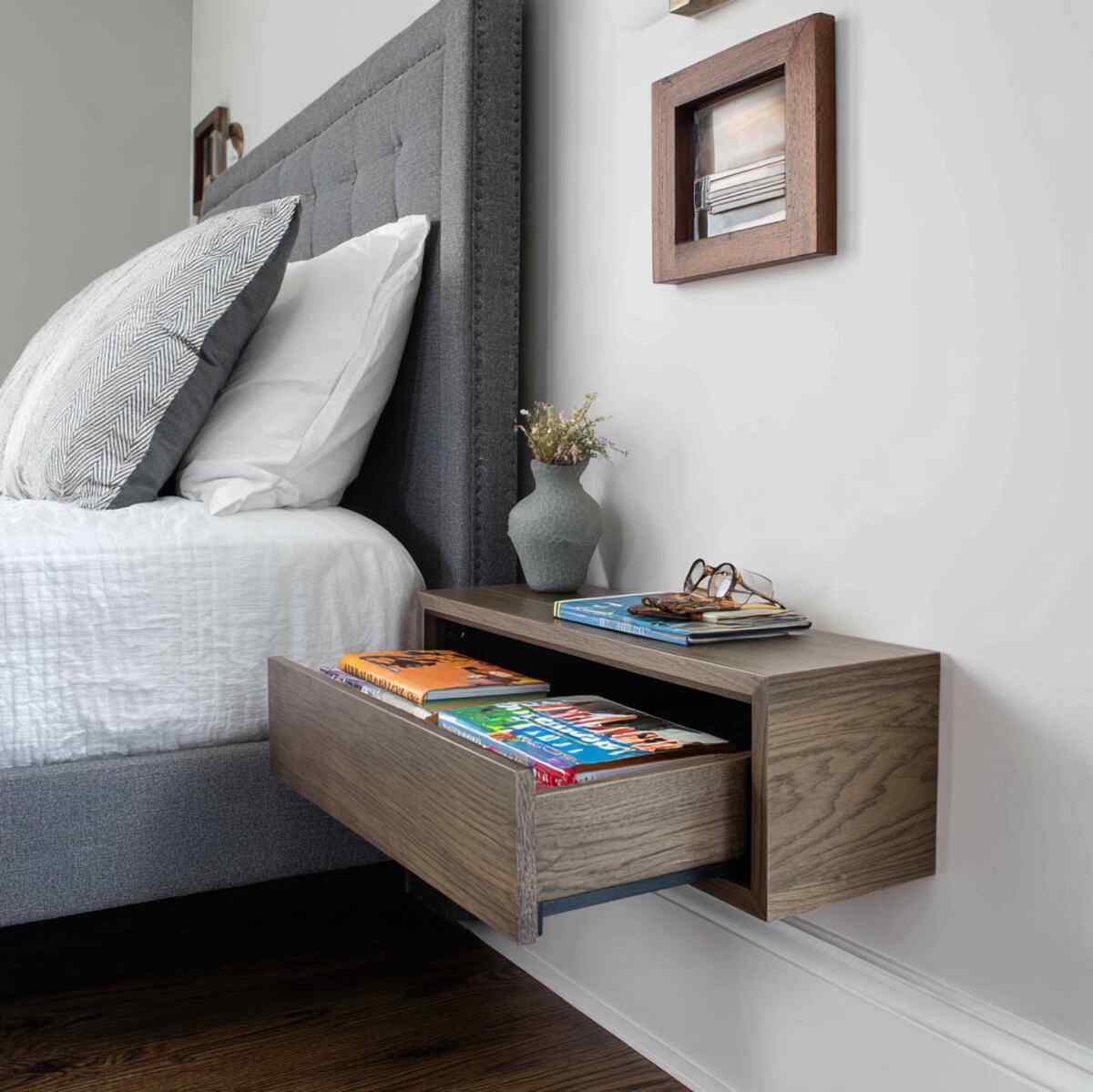 This practical option proves how versatile wall-mounted nightstand ideas can be.