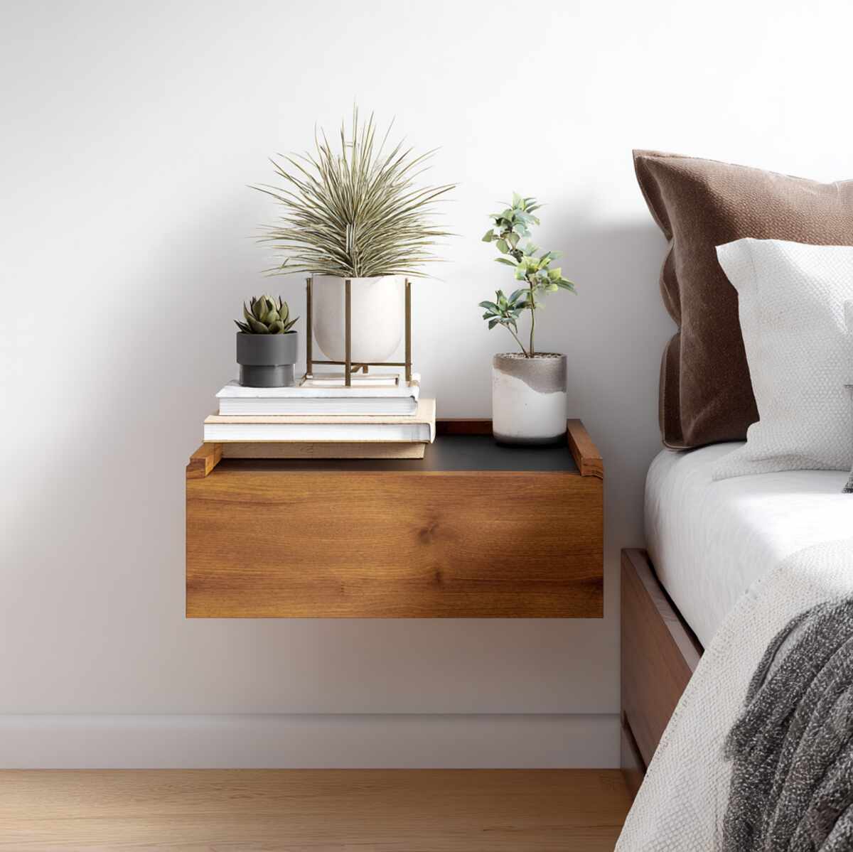 This makes it one of the most efficient wall-mounted nightstand ideas for organization.
