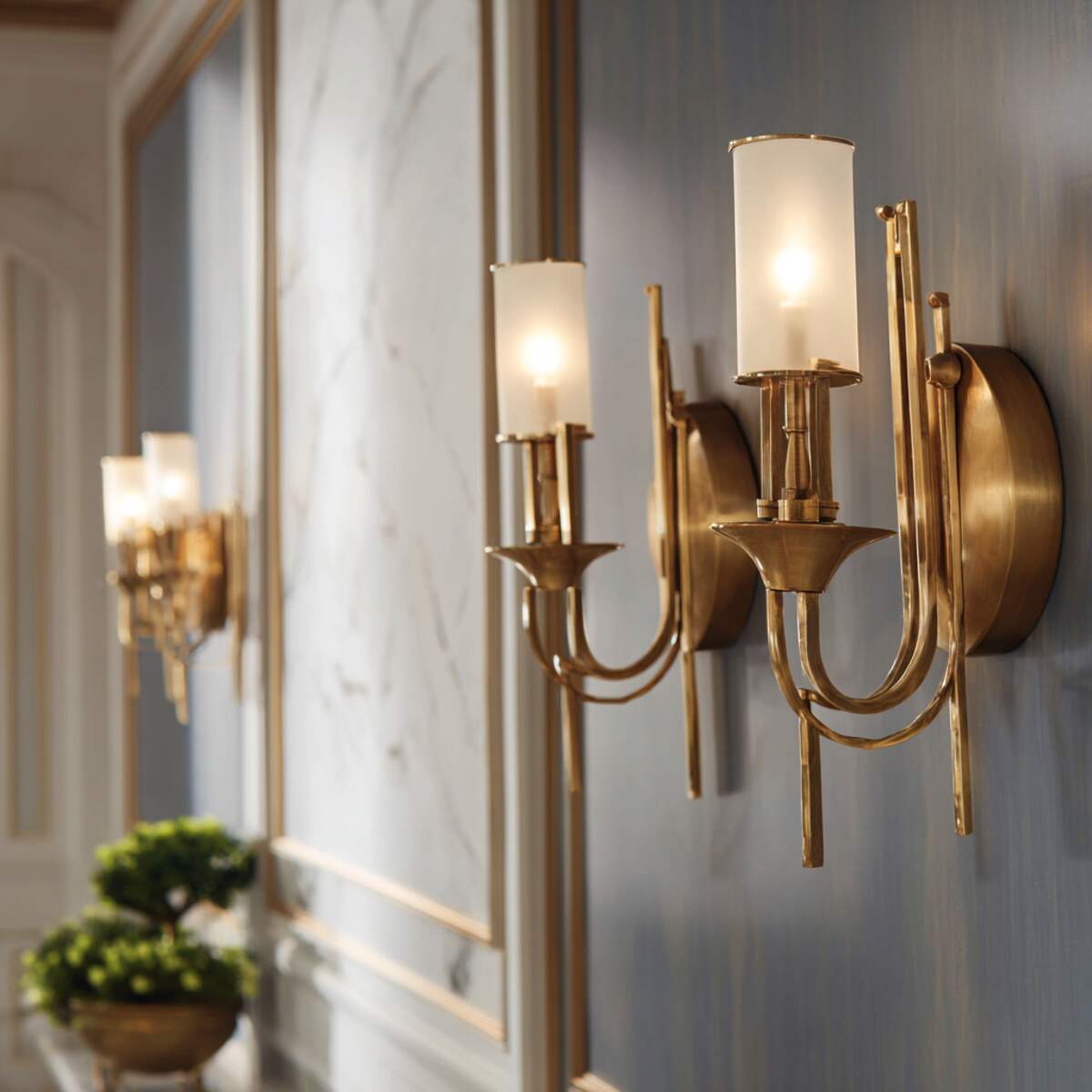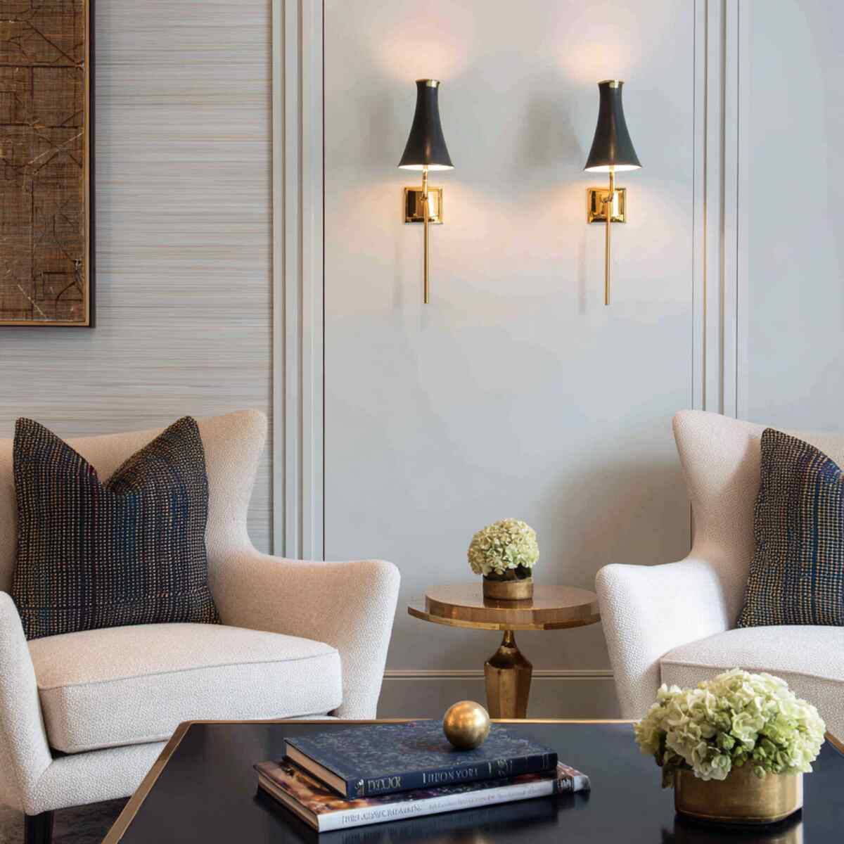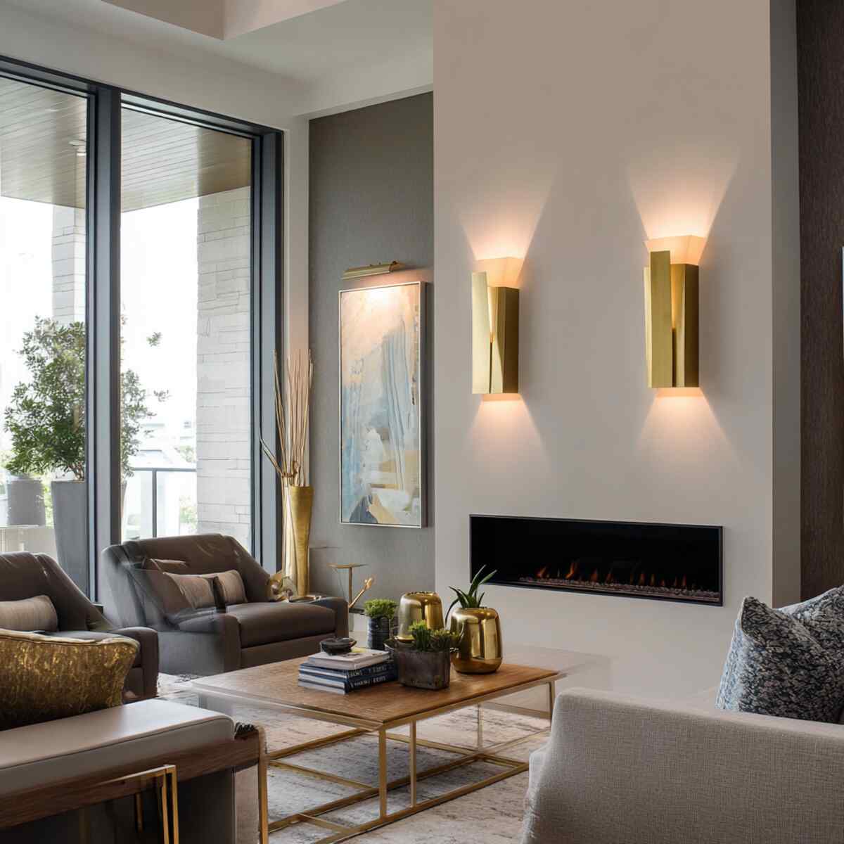 Brass fixtures are elegant Wall Sconce Lighting Ideas for Living Rooms that add a touch of luxury.