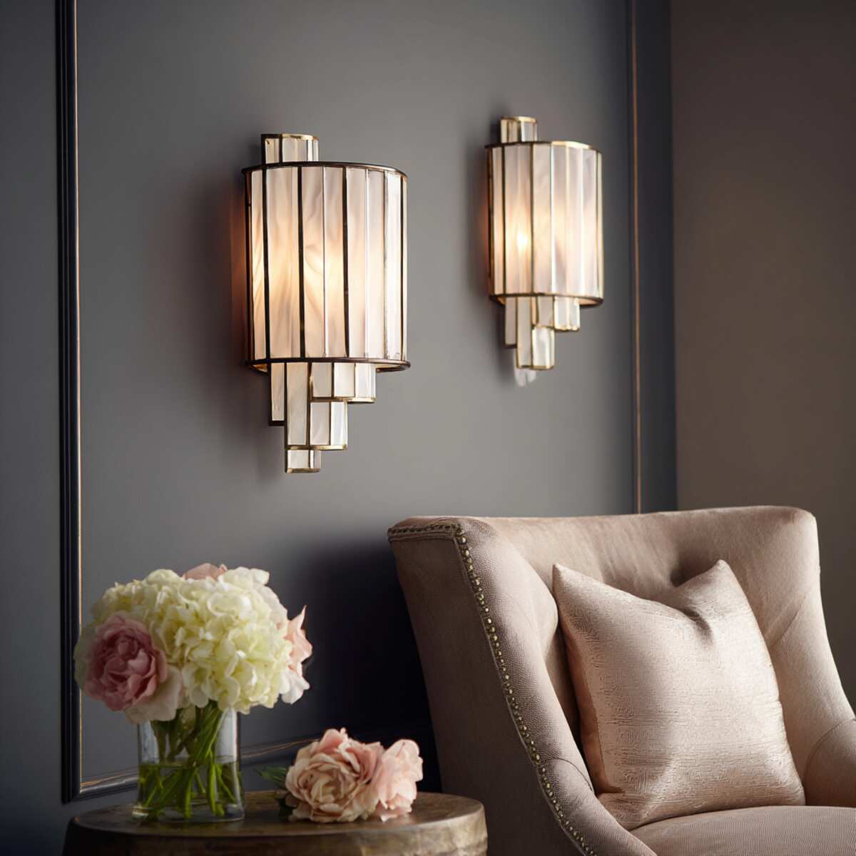 Art deco designs are decorative Wall Sconce Lighting Ideas for Living Rooms that feature bold patterns and symmetry. They add a dramatic and stylish touch to wall lighting.