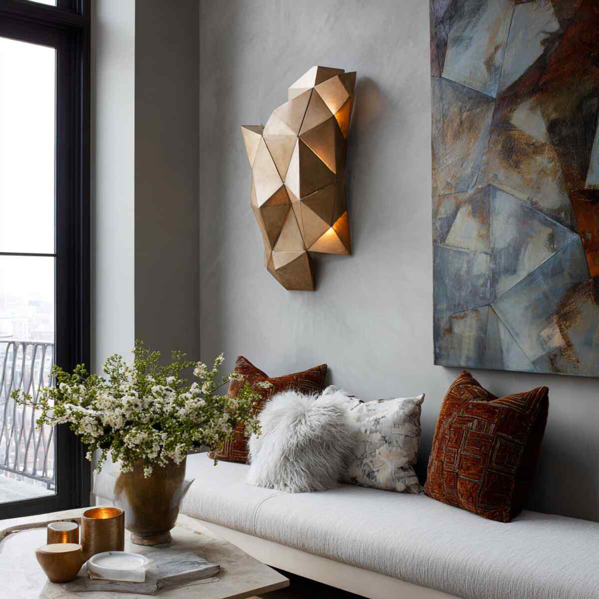 Sculptural designs are artistic Wall Sconce Lighting Ideas for Living Rooms that double as wall décor.