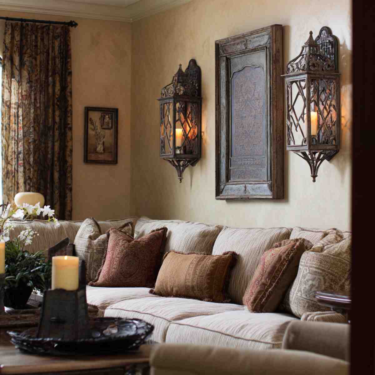 Antique-style fixtures are charming Wall Sconce Lighting Ideas for Living Rooms that add vintage appeal.