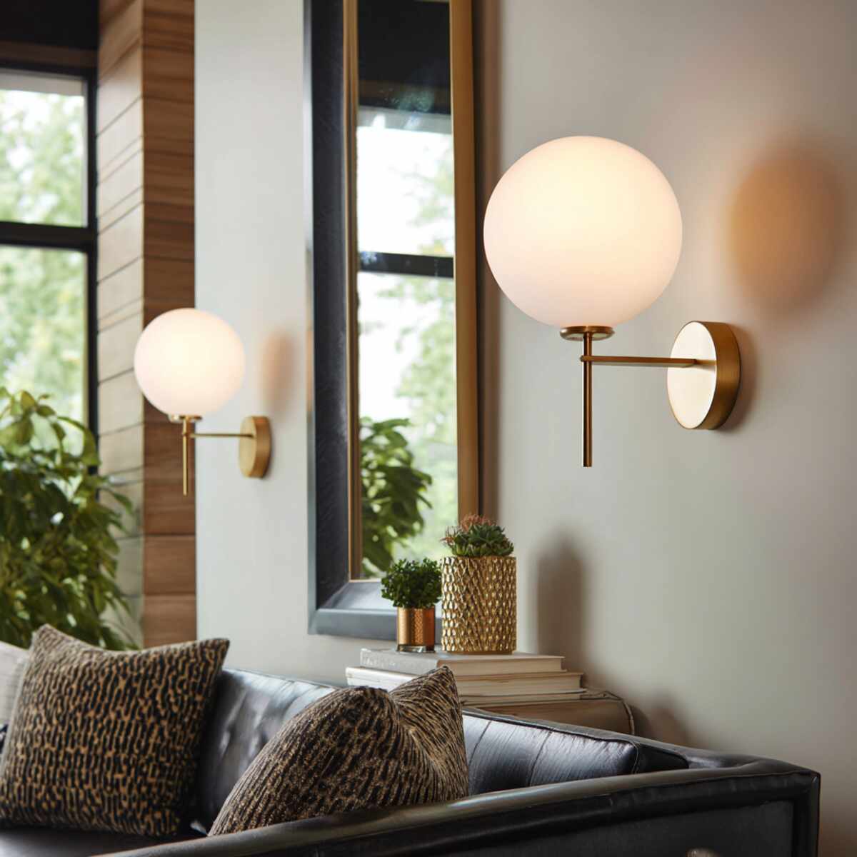 Glass globe designs are soft and stylish Wall Sconce Lighting Ideas for Living Rooms that diffuse light evenly.