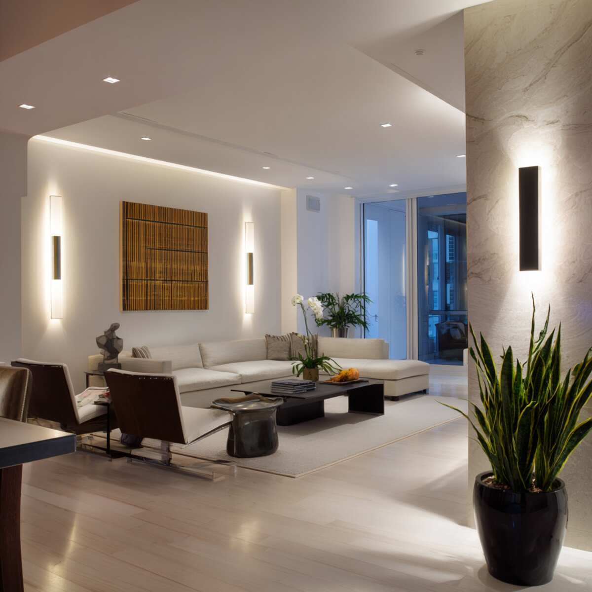 LED strip designs are modern Wall Sconce Lighting Ideas for Living Rooms that provide smooth, energy-efficient lighting.