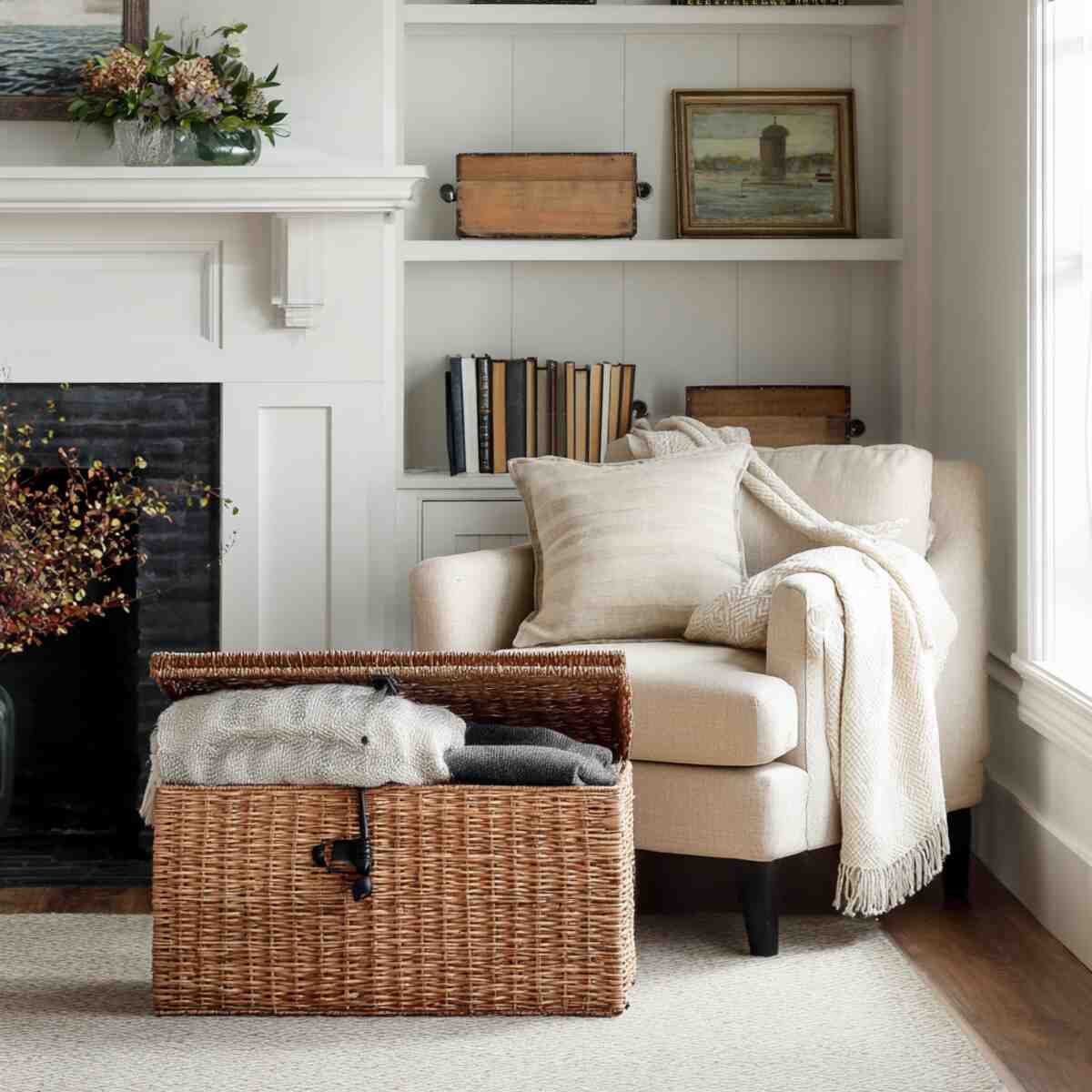 As one of the woven basket storage ideas for every room, it blends functionality with style right where you rest.