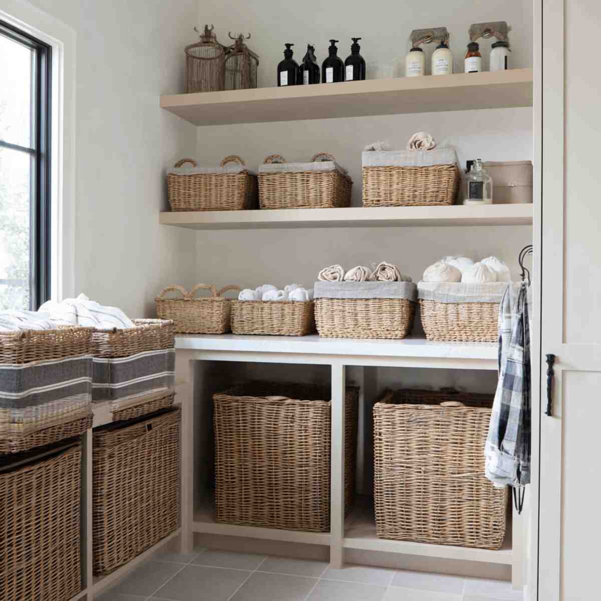 Sorting laundry is much easier when you have baskets designated for different loads. Woven baskets can be labeled for colors, whites, or delicates, making laundry day smoother.